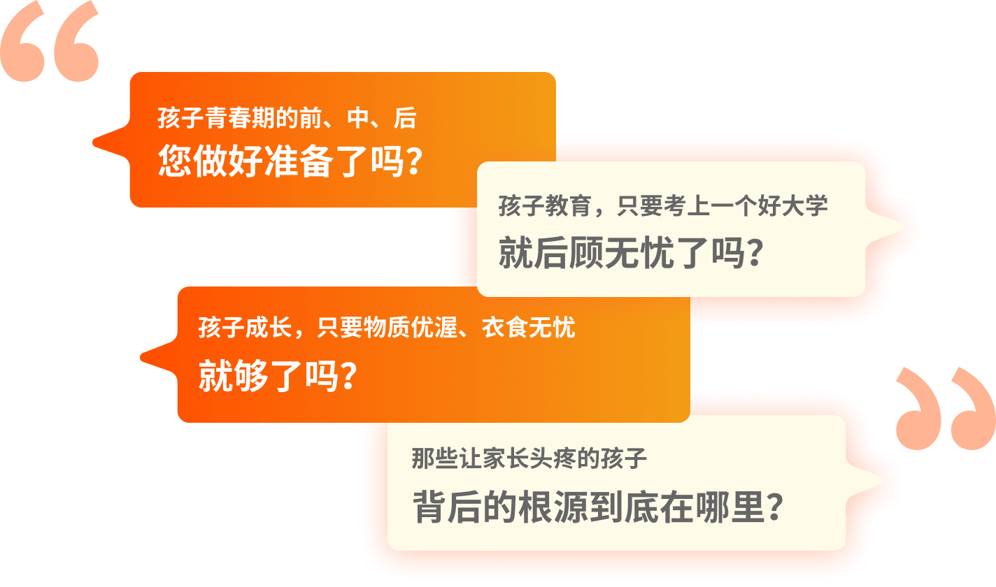 本模块包括《学习的身心基础》《教育升级2030》2门课程,重点探讨提升孩子学习的动力和兴趣、改善孩子面对学业的压力、提升孩子学习的生理基础的理念和方法。